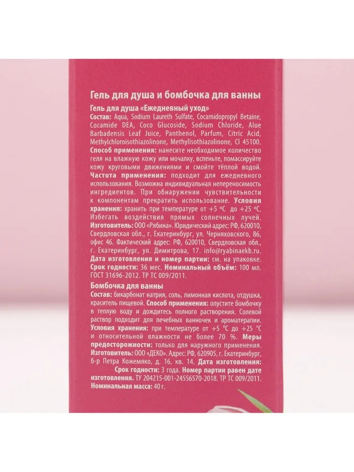 Составляющие набора: Гель для душа