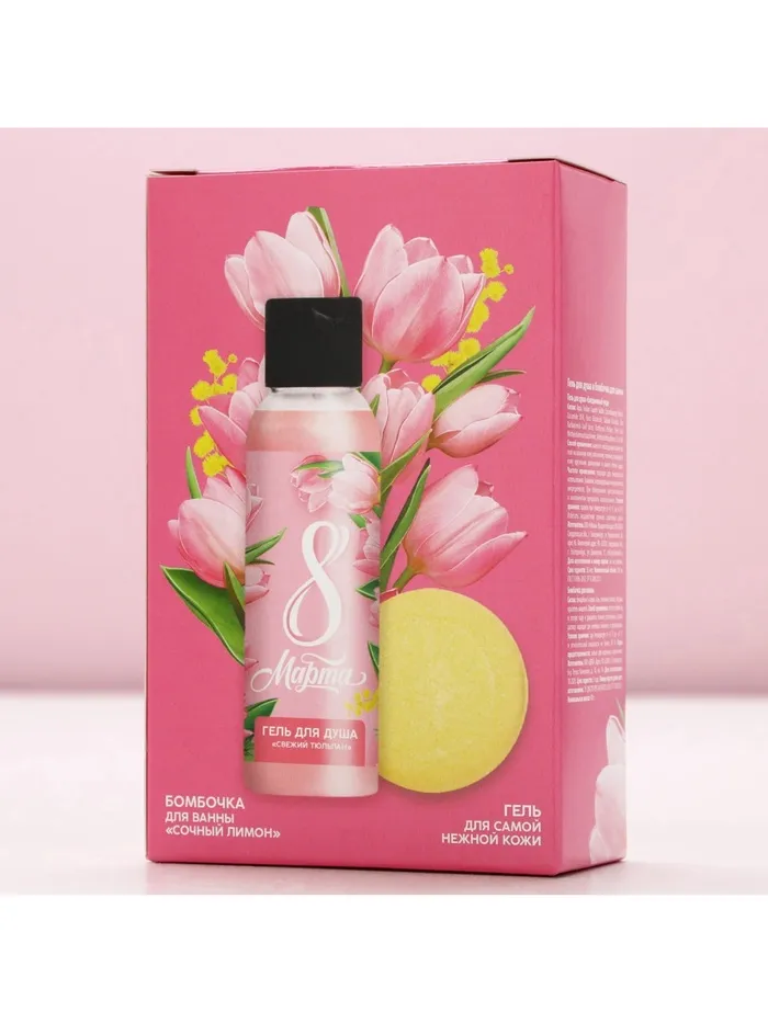 Подарочный набор «С 8 Марта!», гель для душа 100 мл и бомбочка для ванны 40 г, Чистое счастье — Характеристики