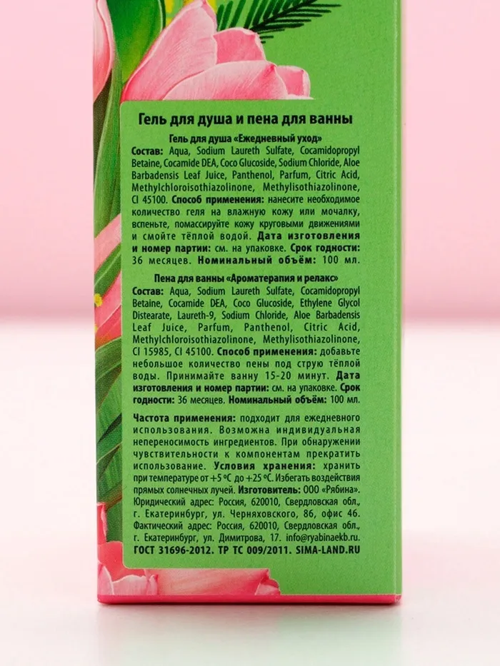 Составляющие набора: Гель для душа