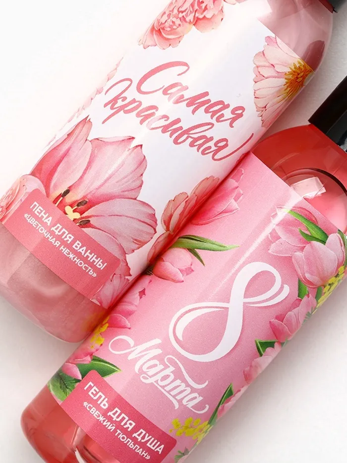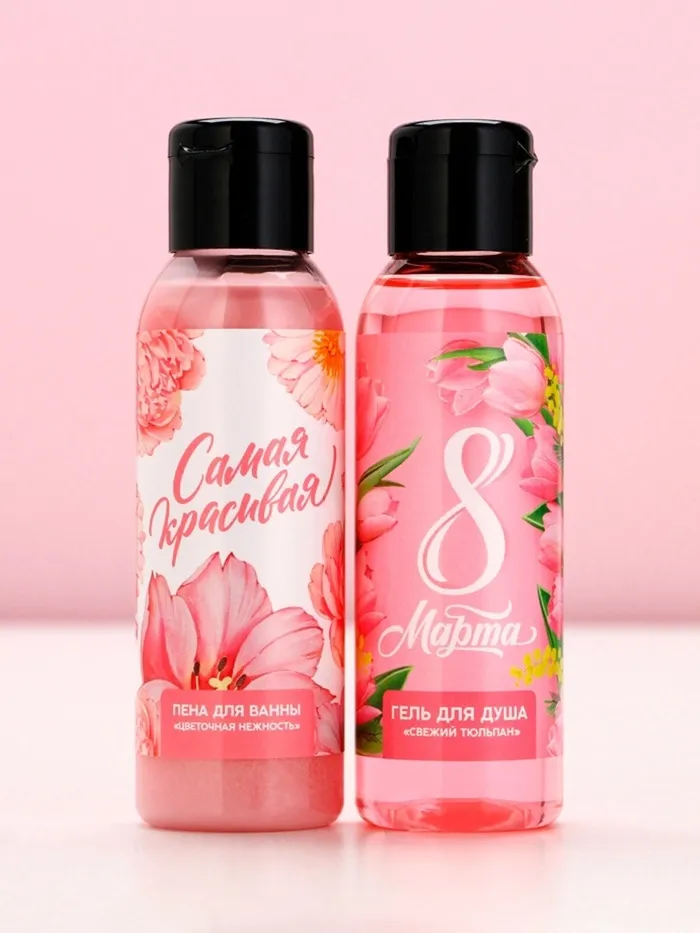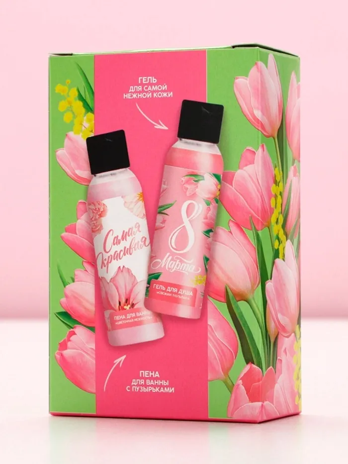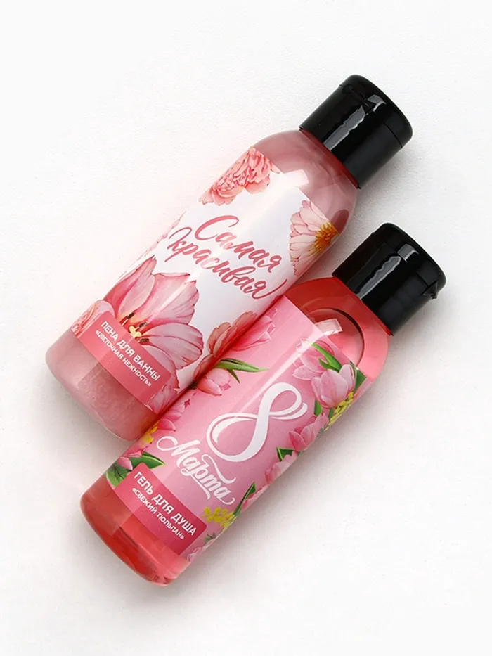 Подарочный набор «С 8 Марта!», гель для душа и пена для ванны, 2×100 мл, Чистое счастье — Характеристики