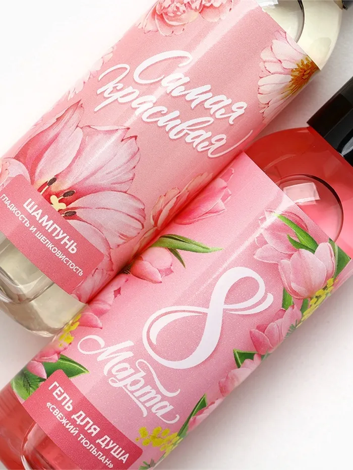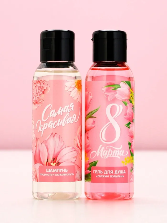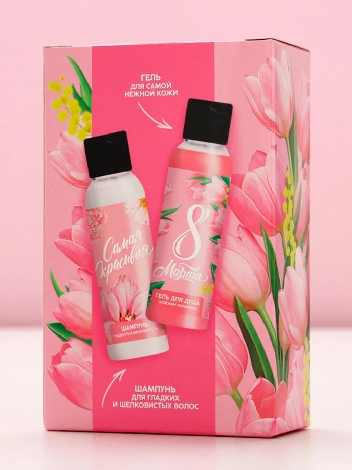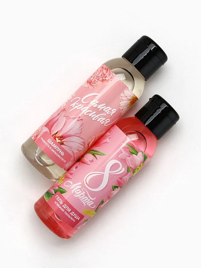 Подарочный набор «С 8 Марта!», гель для душа и шампунь для волос, 2×100 мл, Чистое счастье — Характеристики