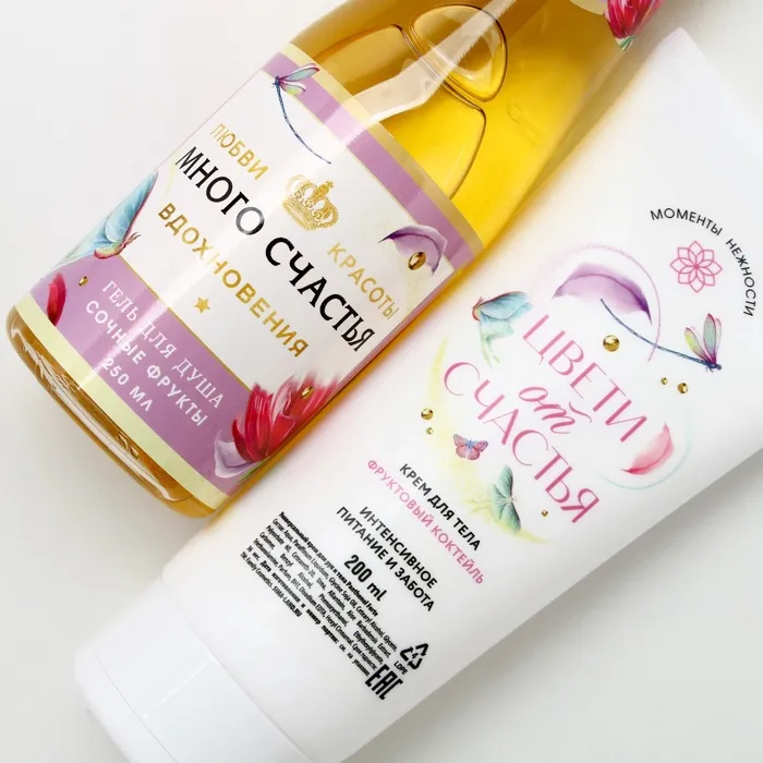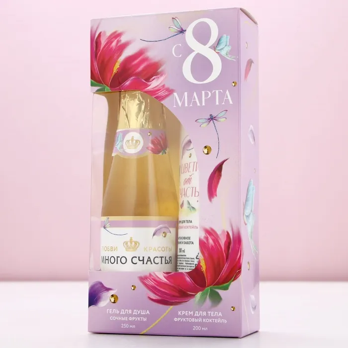 Подарочный набор «С 8 Марта!»: гель для душа шампанское 250 мл и крем для тела 200 мл, Чистое счастье — Характеристики