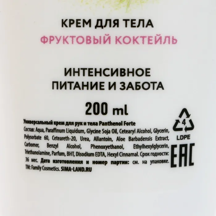 Составляющие набора: Крем для тела