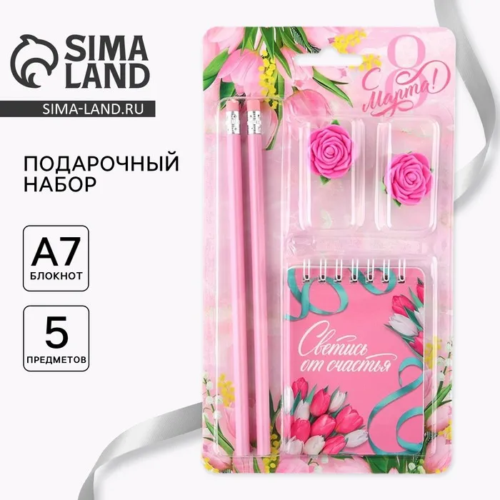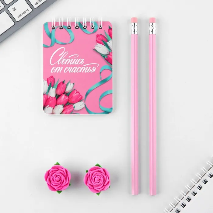 Подарочный набор «С 8 марта», карандаши 2 шт, ластики 2 шт, блокнот — Характеристики