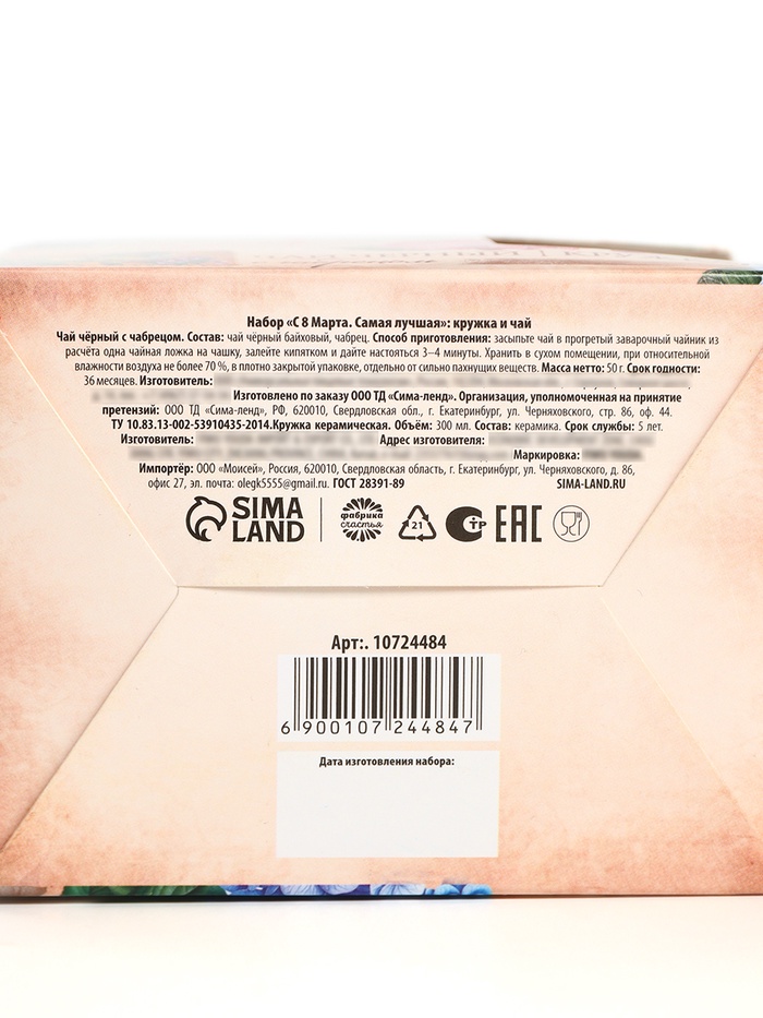 Составляющие набора: Чай