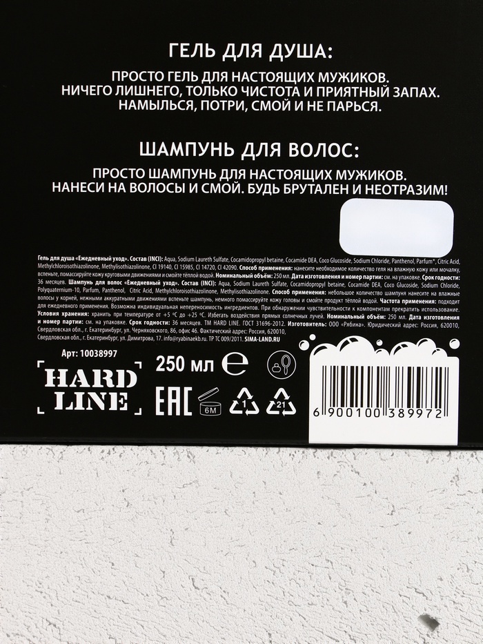 Подарочный набор «С Днём оригинальных подарков», гель для душа и шампунь для волос, 2×250 мл, HARD LINE — Характеристики