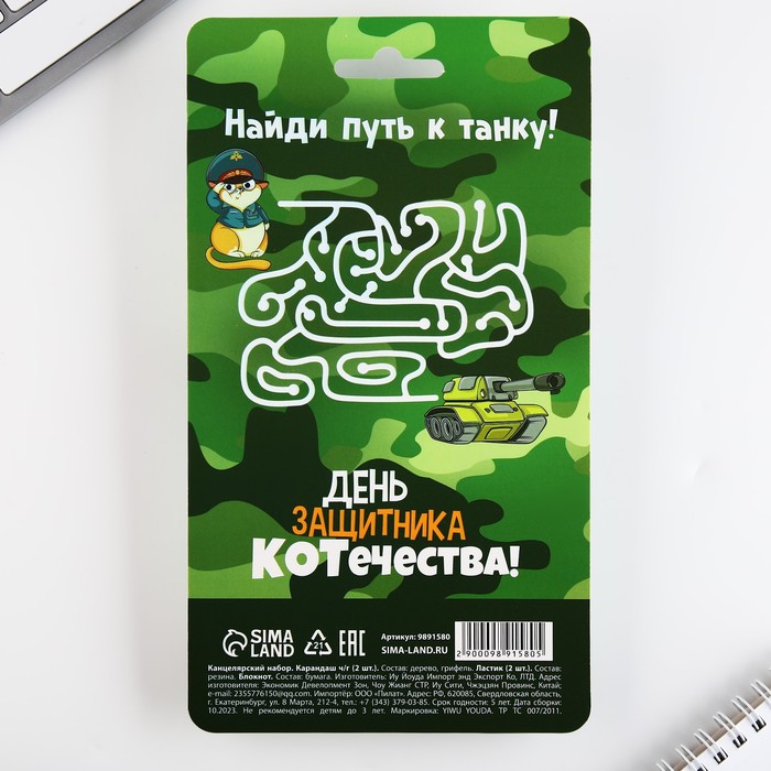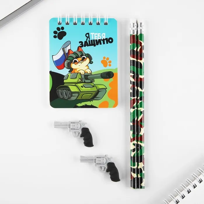 Подарочный набор «С днём защитника отечества. 23 февраля», карандаши 2 шт, ластики 2 шт, блокнот — Характеристики