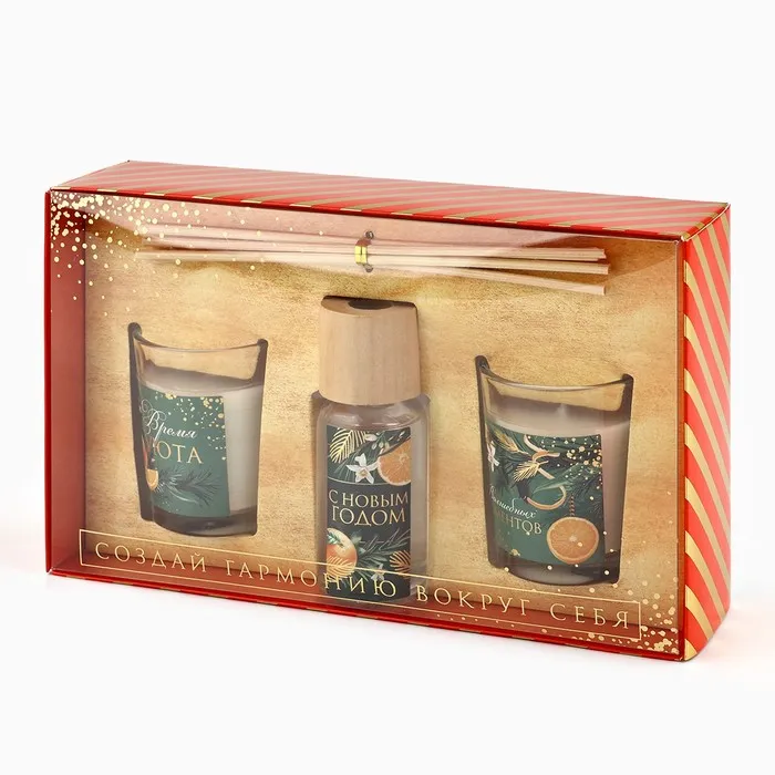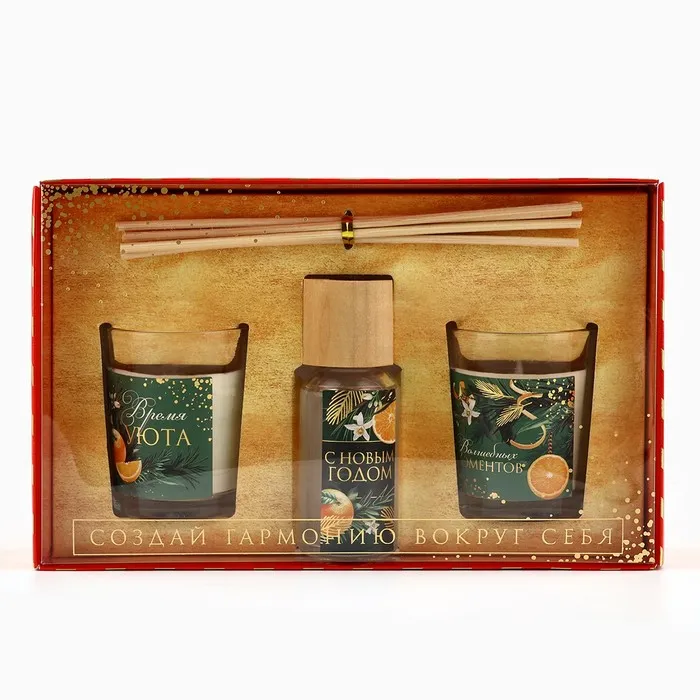 Подарочный набор «С Новым годом!»: свечи 2 шт., 1 диффузор 1 шт., аромат цитрус — Характеристики
