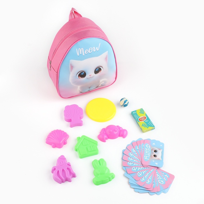 Подарочный набор с рюкзаком + набор формочек для игр в песке «Добрый котик» — Характеристики