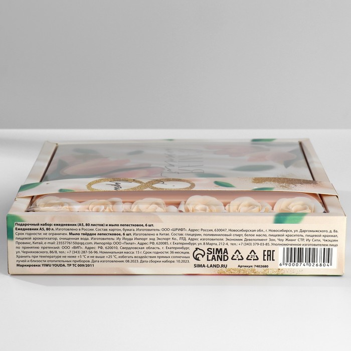 Подарочный набор «Самая нежная.8 марта»: ежедневник А5 80 листов и мыльные лепестки — Характеристики