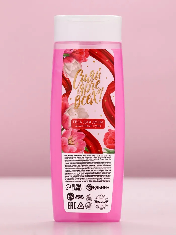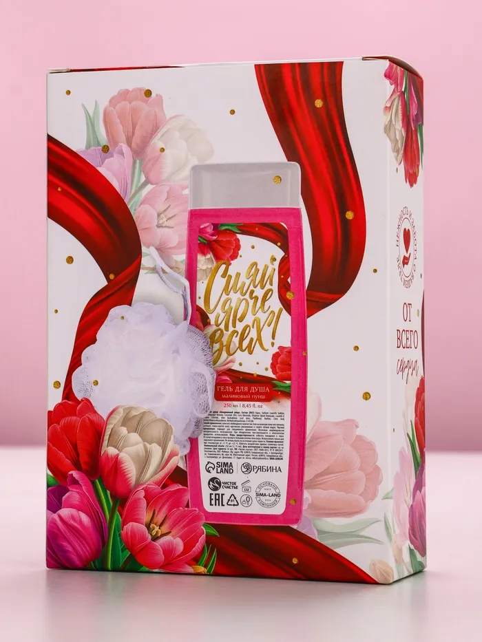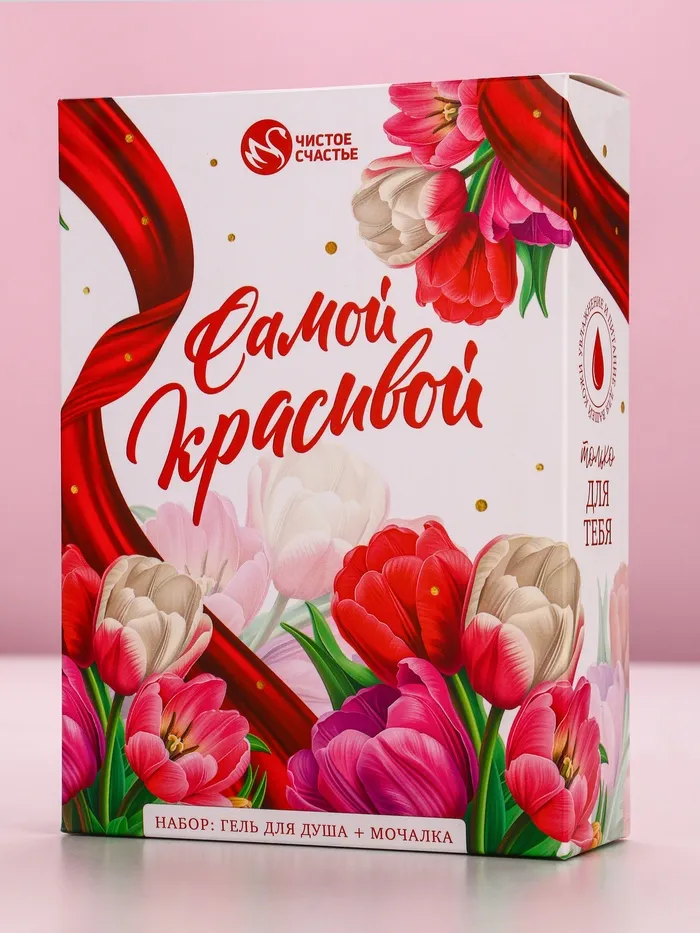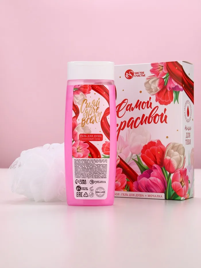Подарочный набор «Самой красивой», гель для душа 250 мл и мочалка для тела, аромат малиновый пунш, Чистое счастье — Характеристики