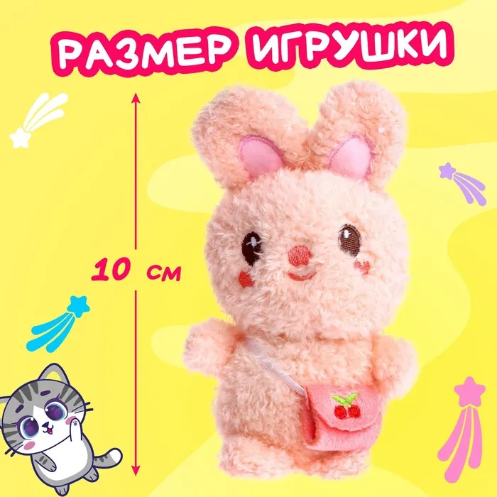- Мягкая игрушка в виде зайки, которая станет верным другом ребёнка. Размер игрушки 8 × 5 × 11 см.