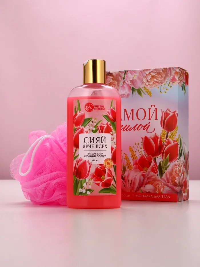 Подарочный набор «Самой милой», гель для душа 250 мл и мочалка для тела, Чистое счастье — Характеристики