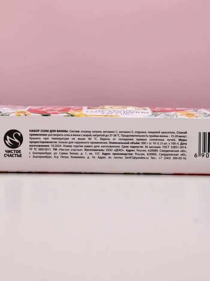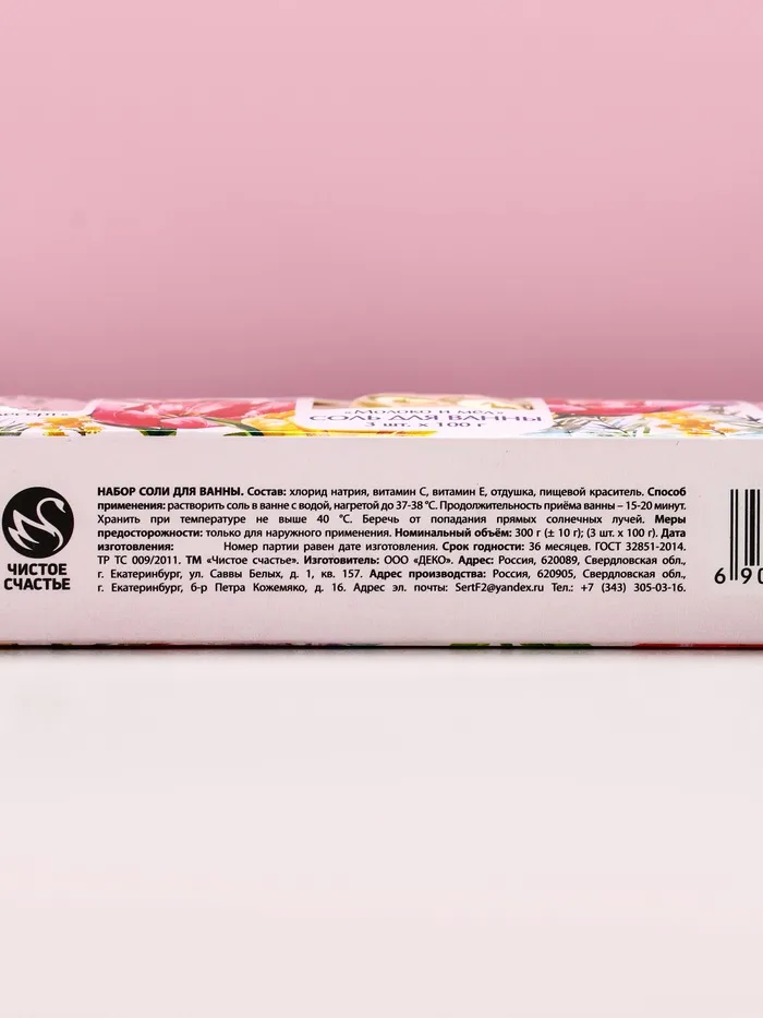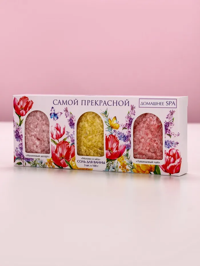 Подарочный набор «Самой прекрасной», соли для ванны, малина, молоко и мёд, лаванда 3×100 г, Чистое счастье — Характеристики