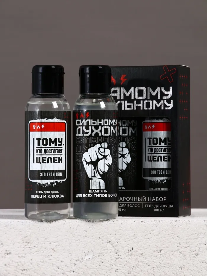 Подарочный набор «Самому сильному», гель для душа и шампунь для волос, 2×100, Чистое счастье — Характеристики