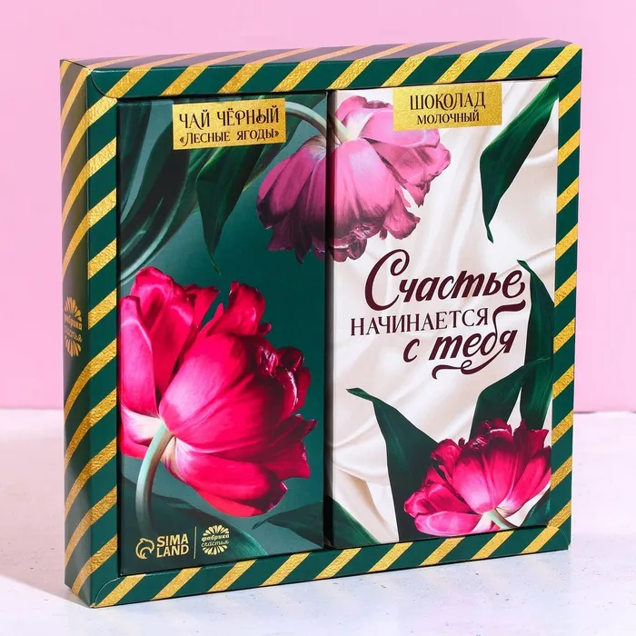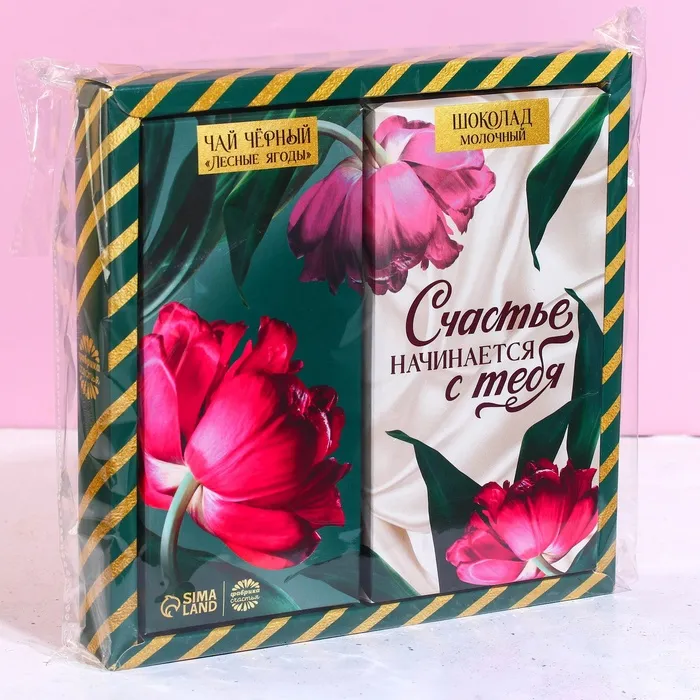 Подарочный набор «Счастье начинается с тебя»: чай чёрный с лесными ягодами 50 г., молочный шоколад 70 г. — Характеристики