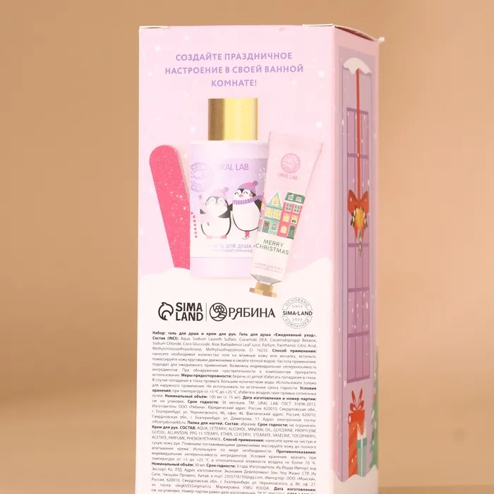 Подарочный набор «Счастья», гель для душа 100 мл, крем для рук 30 мл, пилочка для ногтей URAL LAB — Характеристики