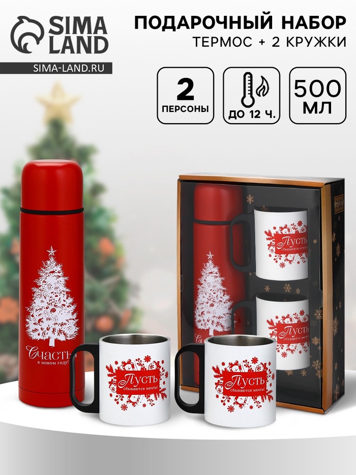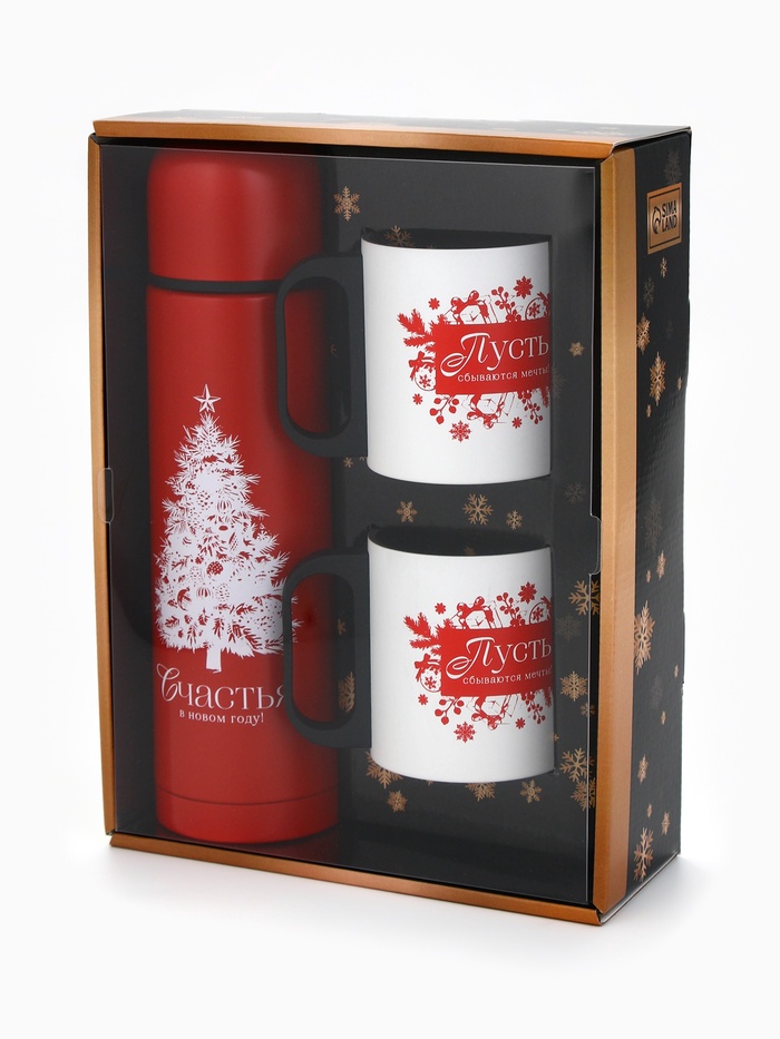 Подарочный набор «Счастья в Новом году», термос 500 мл, кружка 2 шт. — Характеристики