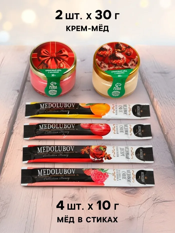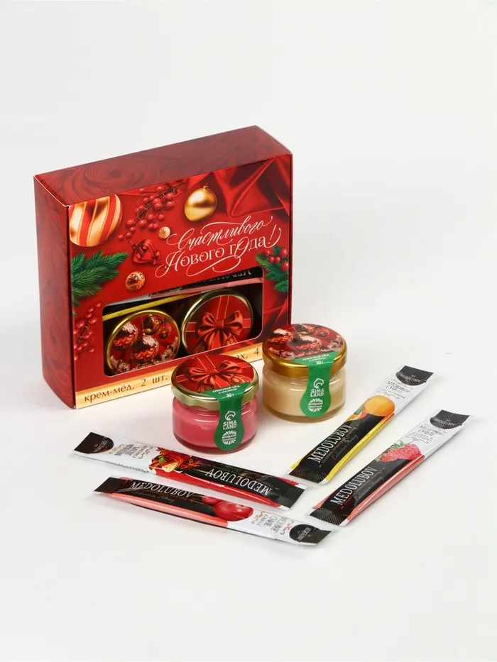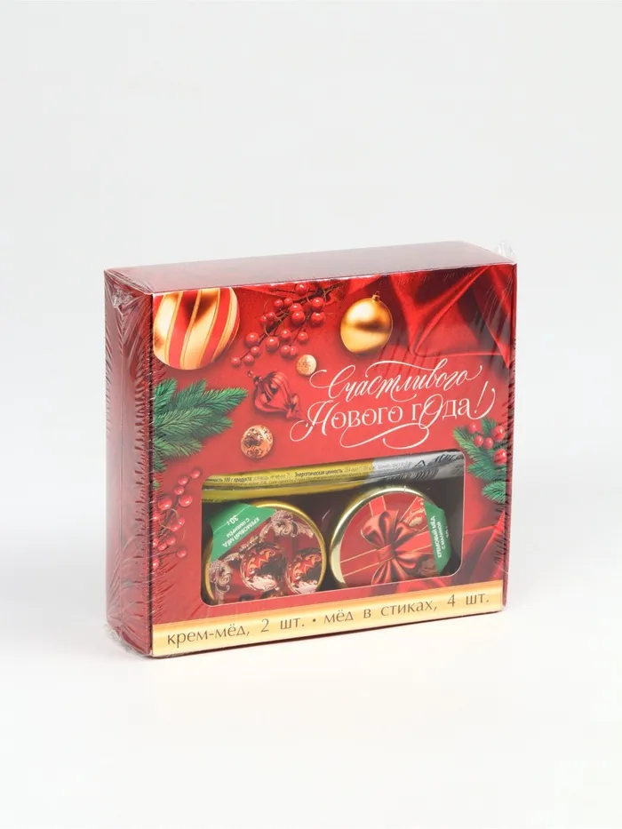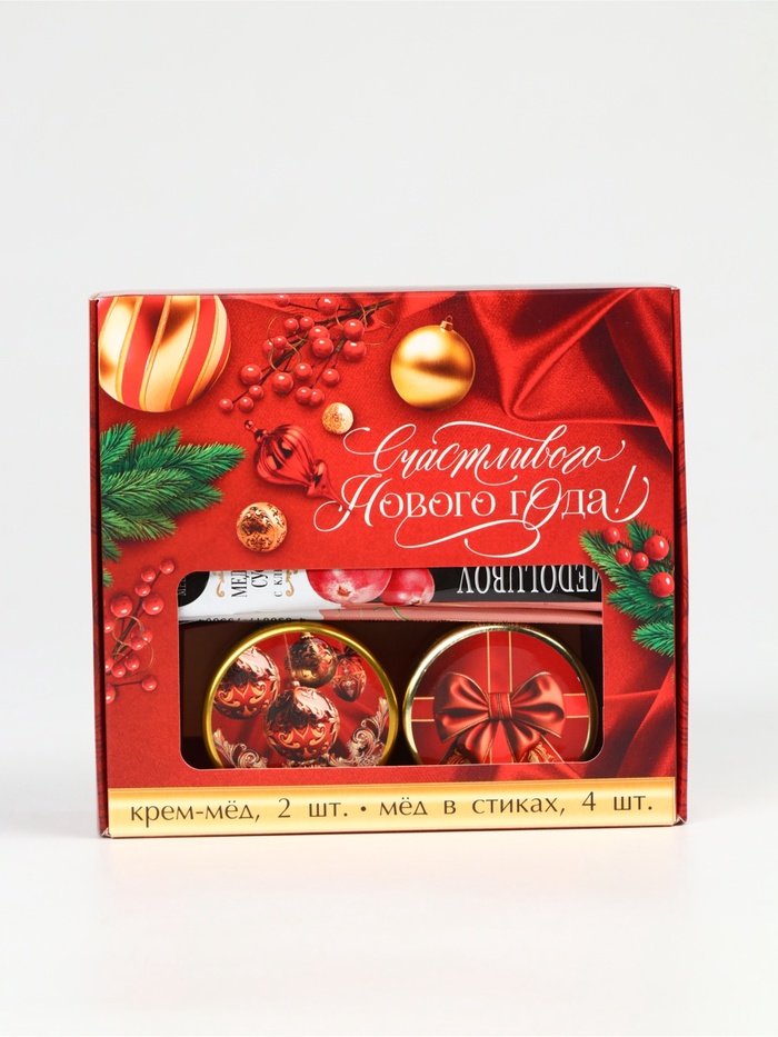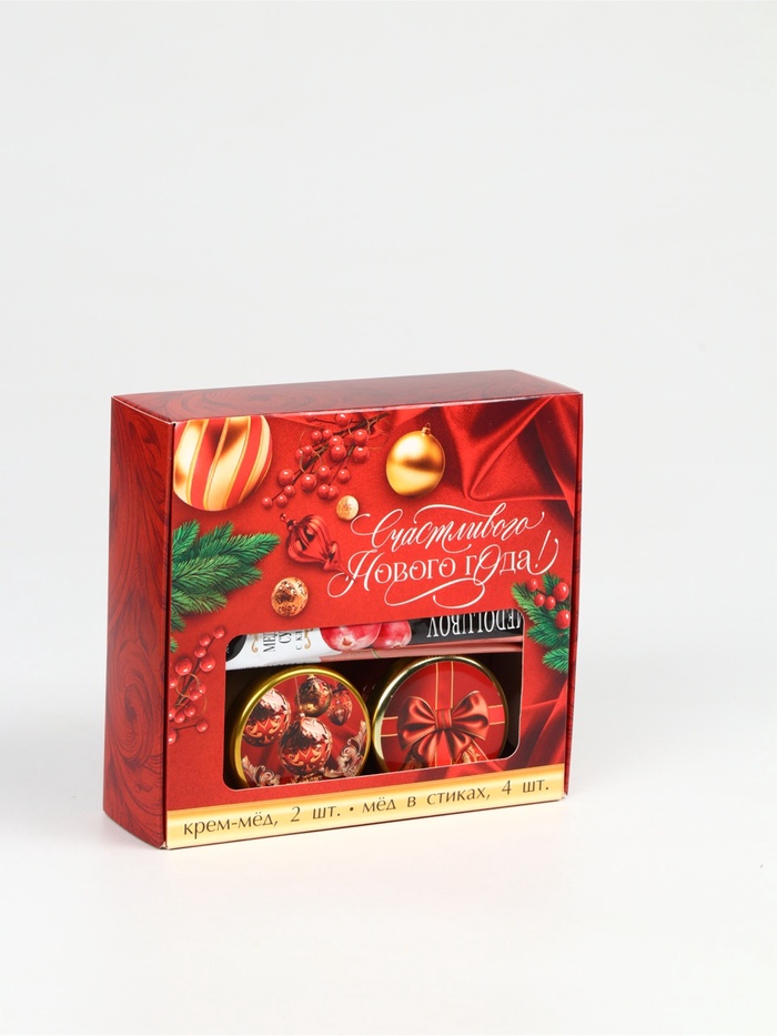 Подарочный набор «Счастливого нового года»: крем-мёд 2 шт., мёд в стиках 4 шт. — Характеристики