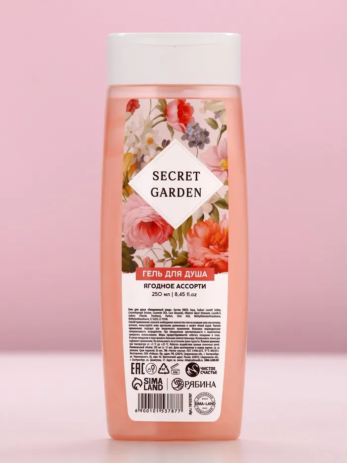 Подарочный набор SECRET GARDEN, гель для душа 250 мл и мочалка для тела, Чистое счастье — Характеристики