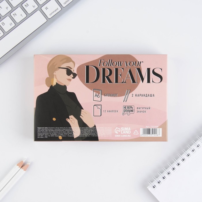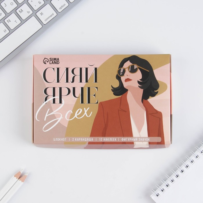 Подарочный набор «Сияй ярче всех» блокнот, значок, наклейки и карандаши 2 шт — Характеристики