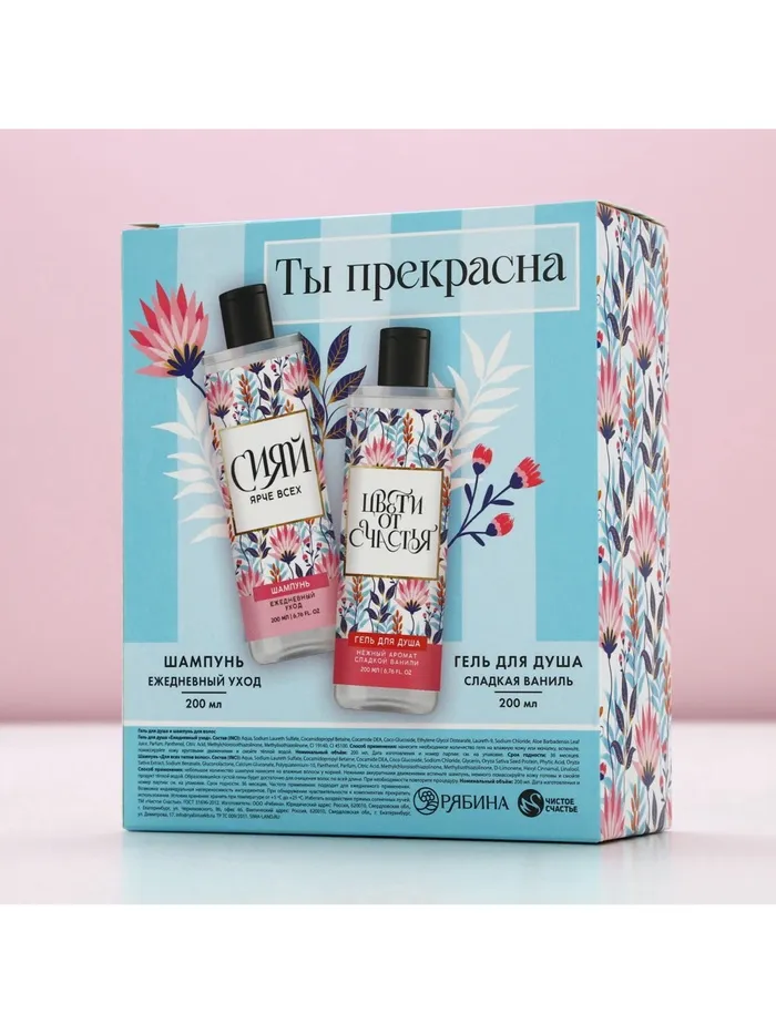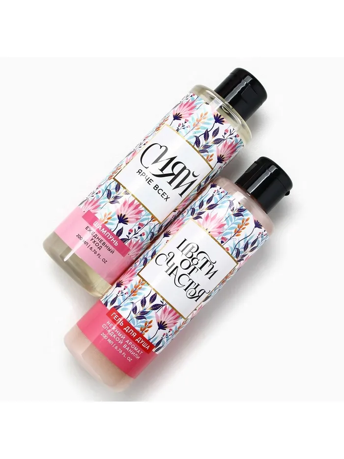 Подарочный набор «Сияй ярче всех!», гель для душа и шампунь для волос, 2×200 мл, Чистое счастье — Характеристики