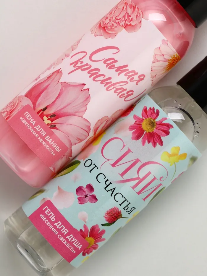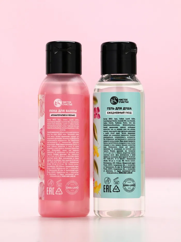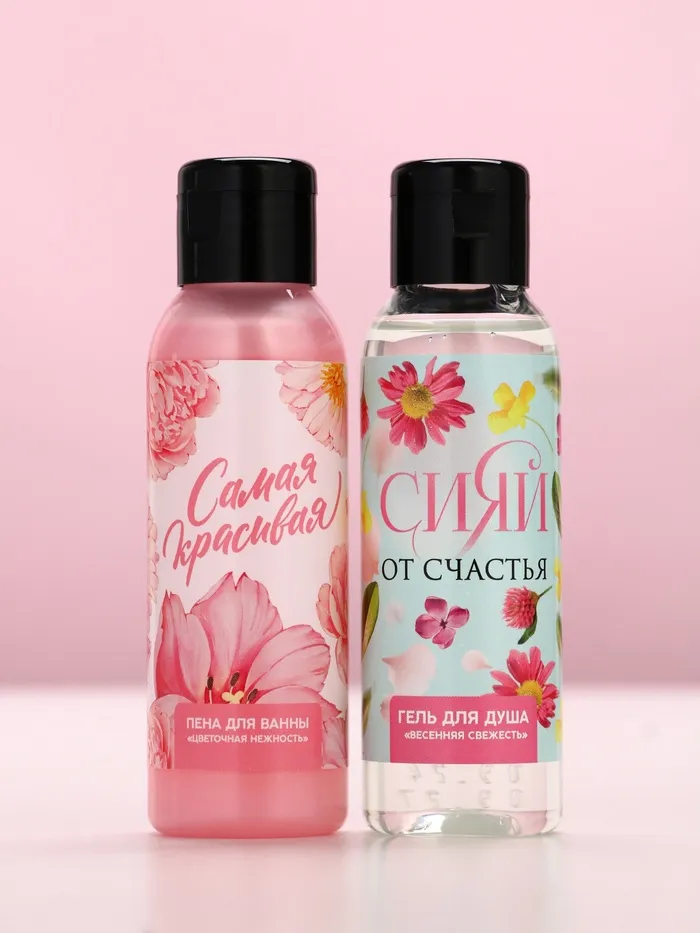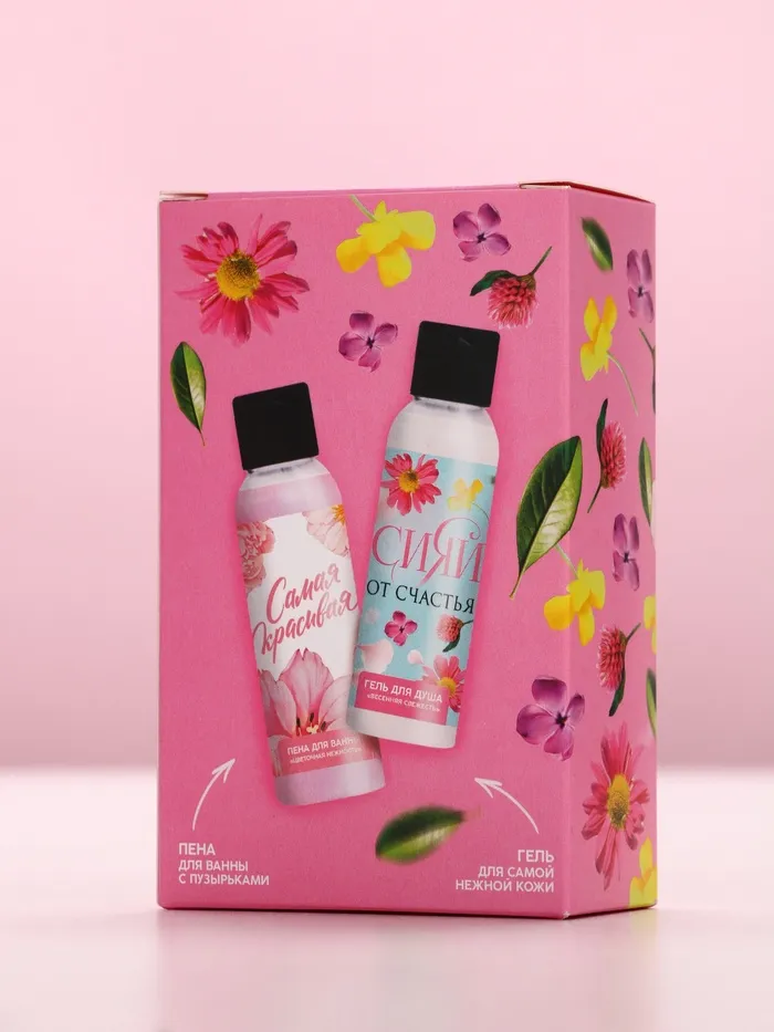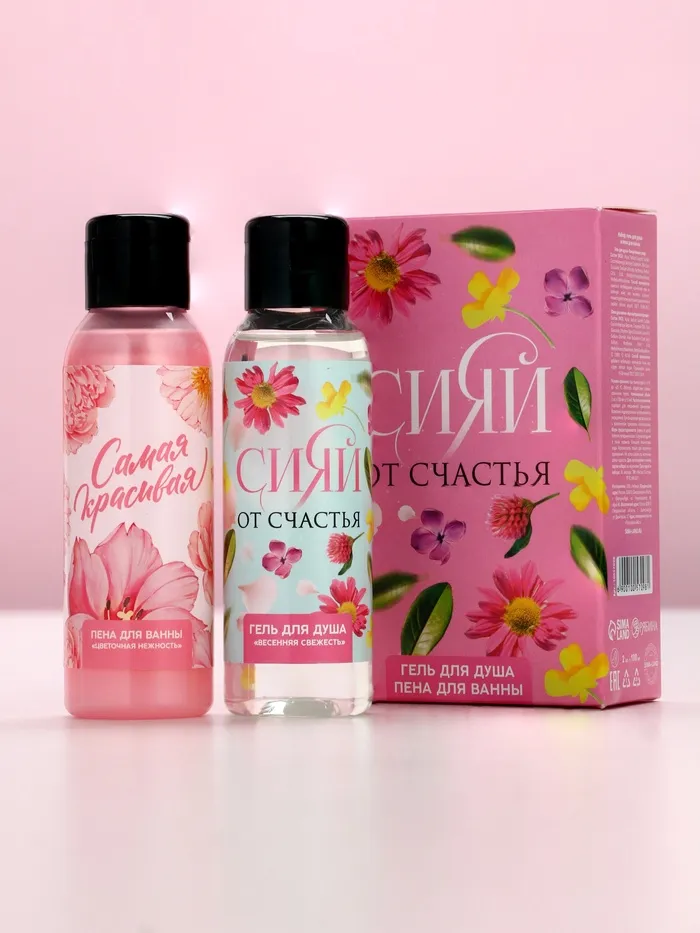 Подарочный набор «Сияй от счастья», гель для душа и пена для ванны, 2×100 мл, Чистое счастье — Характеристики