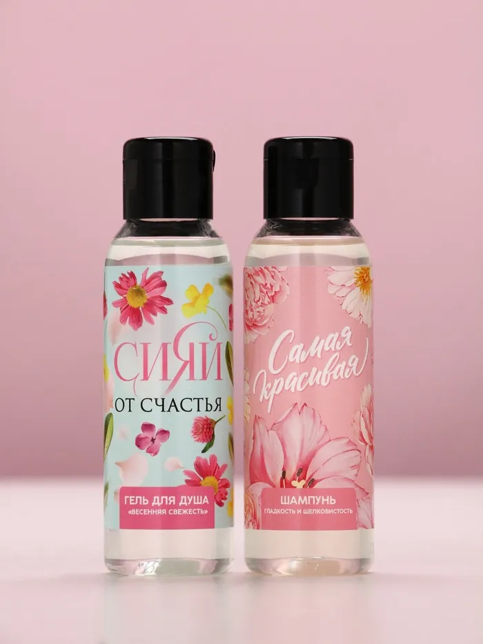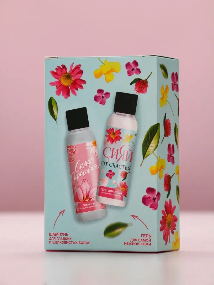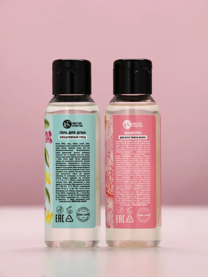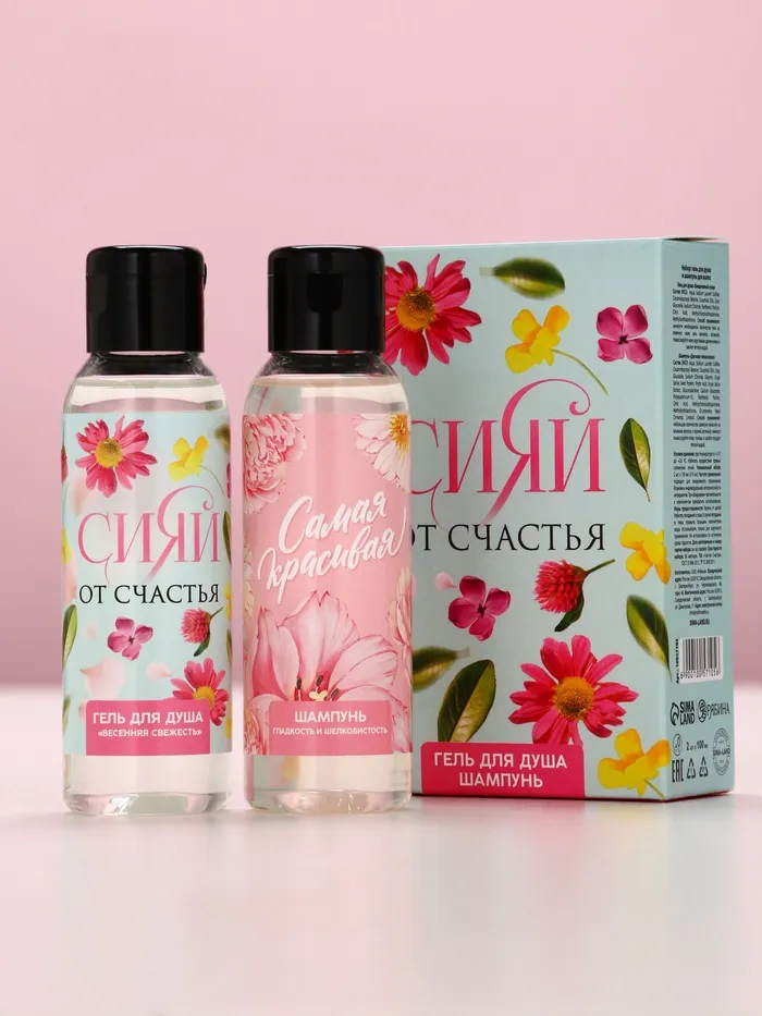 Подарочный набор «Сияй от счастья», гель для душа и шампунь для волос, 2×100 мл, Чистое счастье — Характеристики