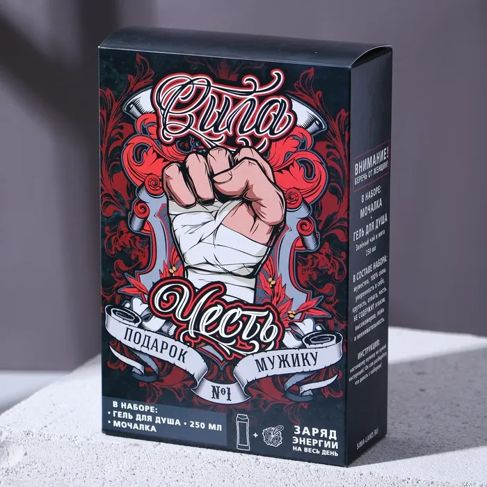 Подарочный набор «Сила и честь», гель для душа 250 мл, аромат ледяная свежесть, мочалка — Характеристики