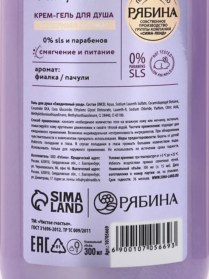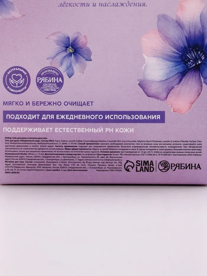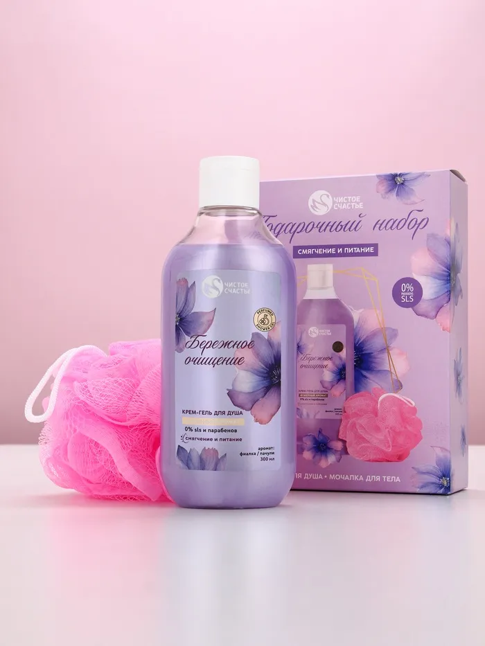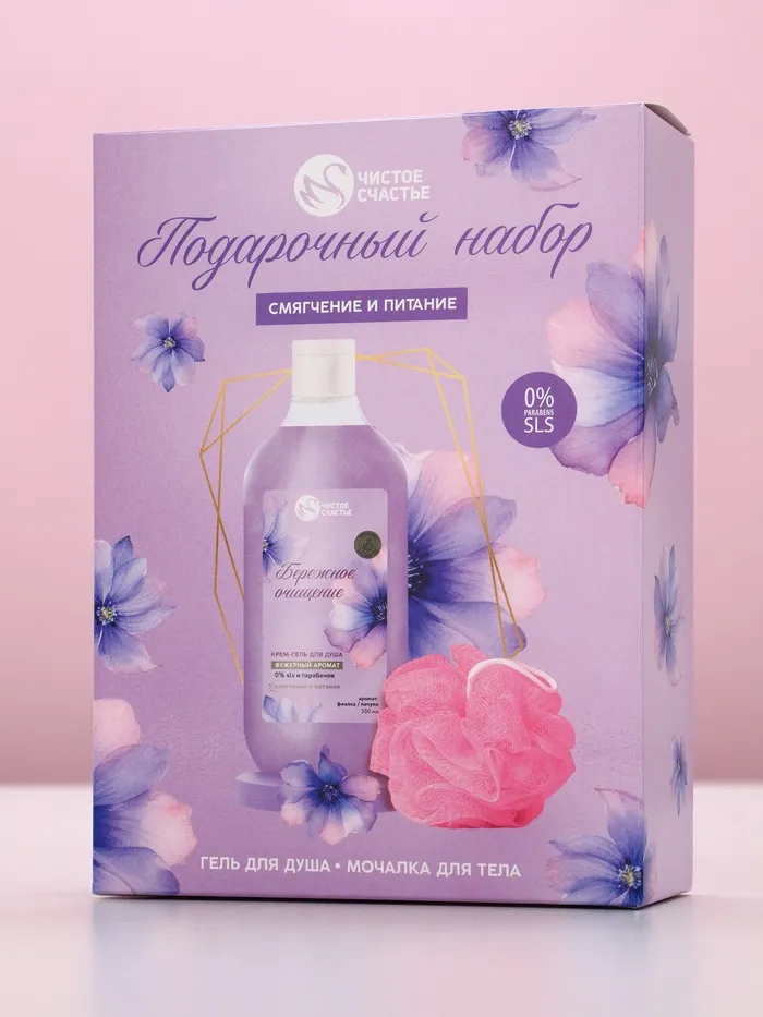 Подарочный набор «Смягчение и питание», крем-гель для душа 300 мл и мочалка для тела — Характеристики