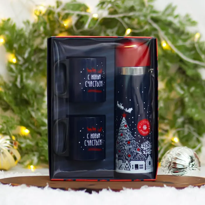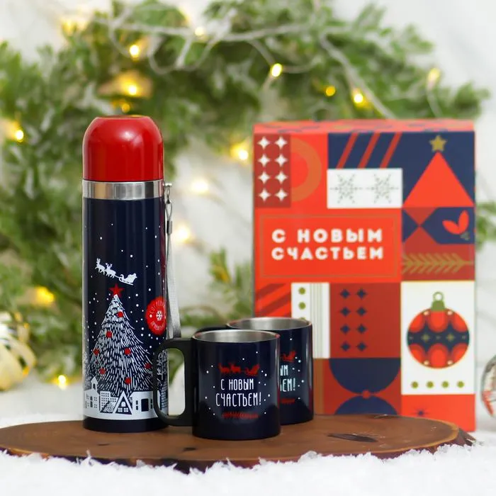 Подарочный набор «Согревайся», термос, кружка 2 шт. — Характеристики