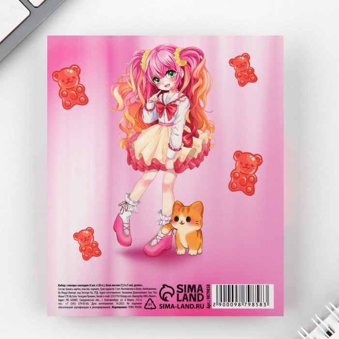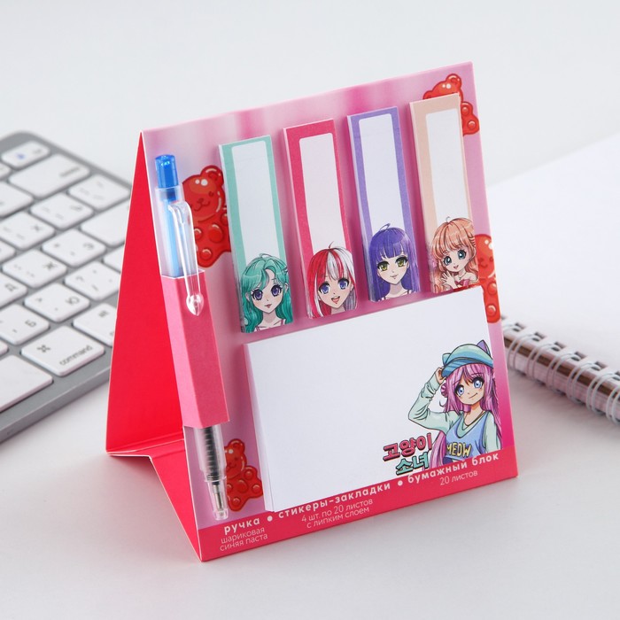 Подарочный набор стикера-закладки и ручка «Аниме», 20 л в блоке — Характеристики