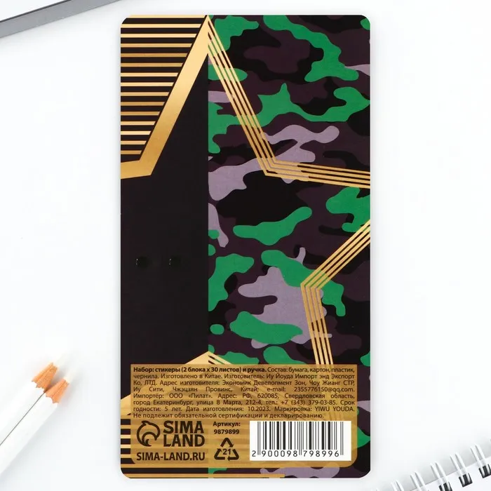 Подарочный набор, стикеры 2×30 л., ручка синяя паста 0.7 мм «Настоящий герой» — Характеристики