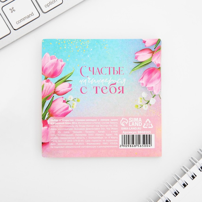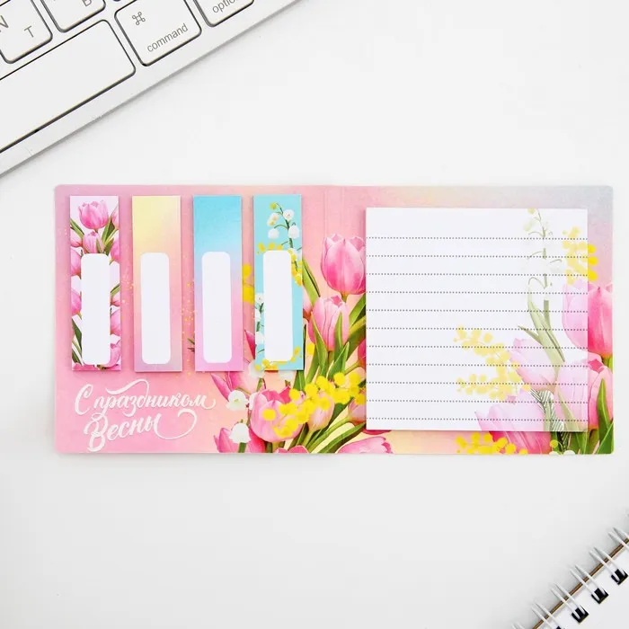 Подарочный набор, стикеры 4×20 л, отрывной блок 30 л., в открытке «8 Марта» — Характеристики