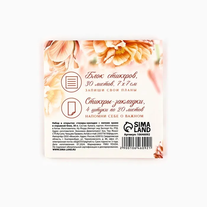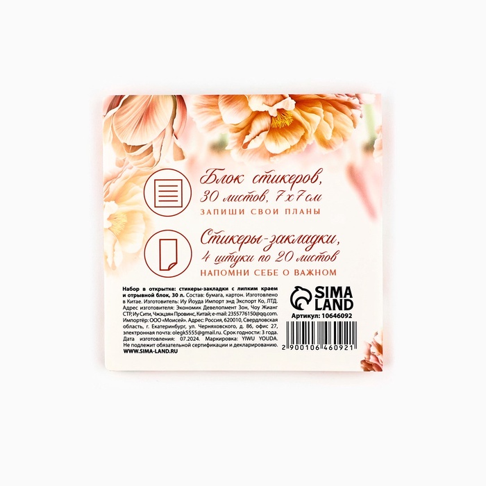 Подарочный набор, стикеры 4×20 л, отрывной блок 30 л., в открытке «8 марта: С праздником весны» — Характеристики