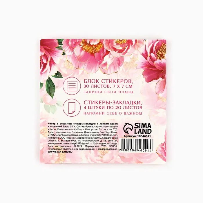Подарочный набор, стикеры 4×20 л, отрывной блок 30 л., в открытке «Самой нежной» — Характеристики