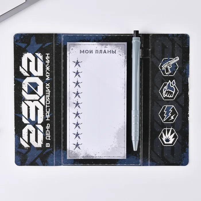 Подарочный набор, стикеры с липким слоем и ручка «23 февраля» — Характеристики