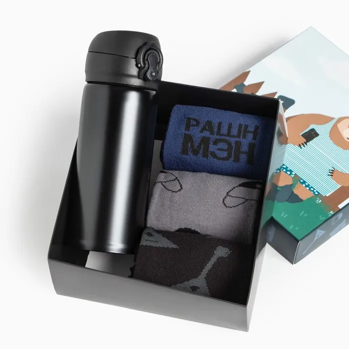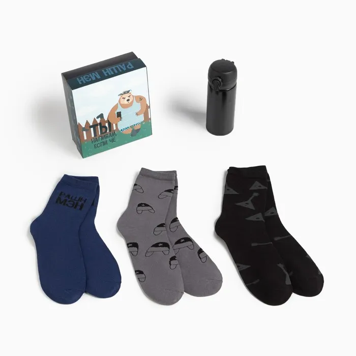 Подарочный набор термос и носки 3 пары KAFTAN "Если че", размер 41-44 (27-29 см) — Характеристики