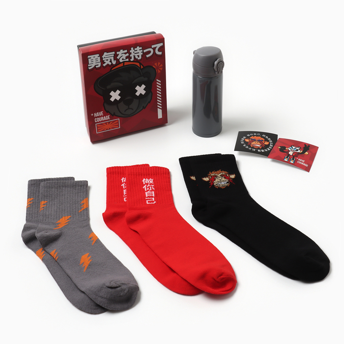 Подарочный набор термос и носки 3 пары KAFTAN "Медведь", р. 37-39 (23-25 см) — Характеристики