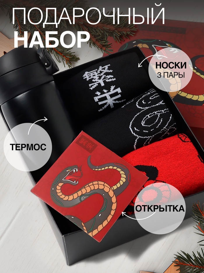 Подарочный набор термос и носки 3 пары KAFTAN "Змея" размер 41-44 (27-29 см) — Характеристики
