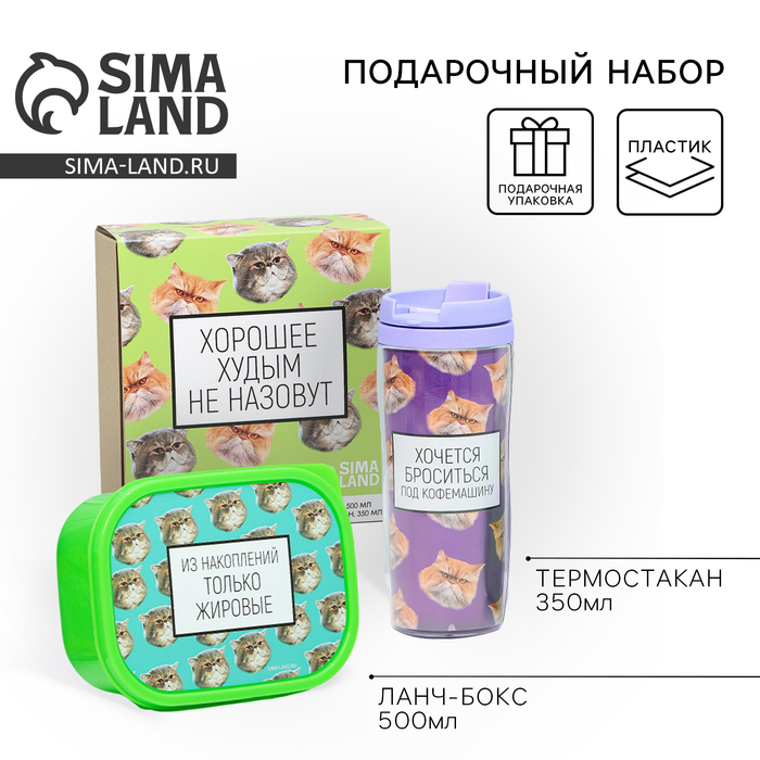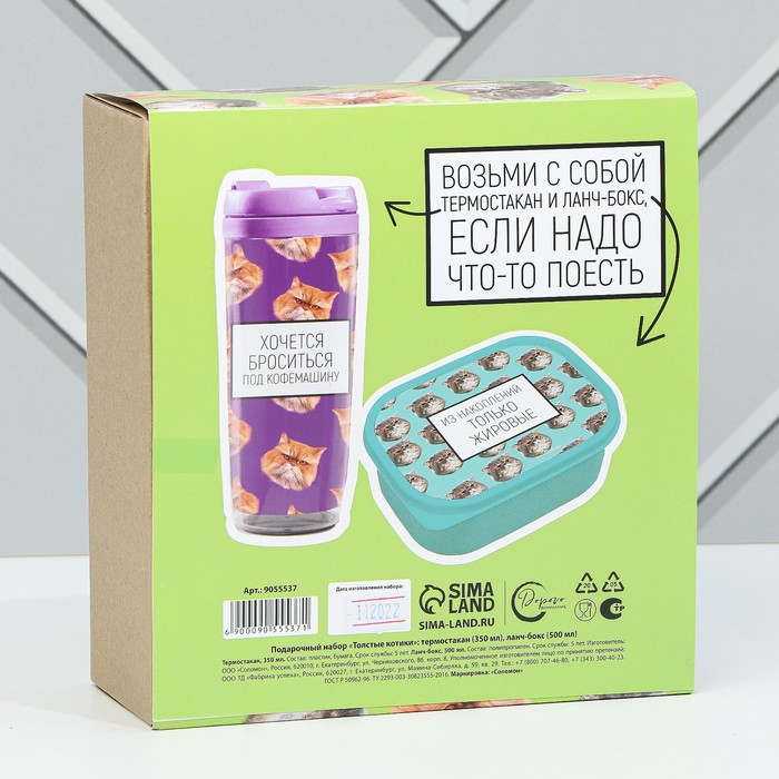 Набор из ланч-бокса и термостакана - это сочетание функциональности, стиля и удобства. Изготовленные из высококачественного пластика и произведенные в России, эти аксессуары обеспечивают долговечность и практичность в использовании.