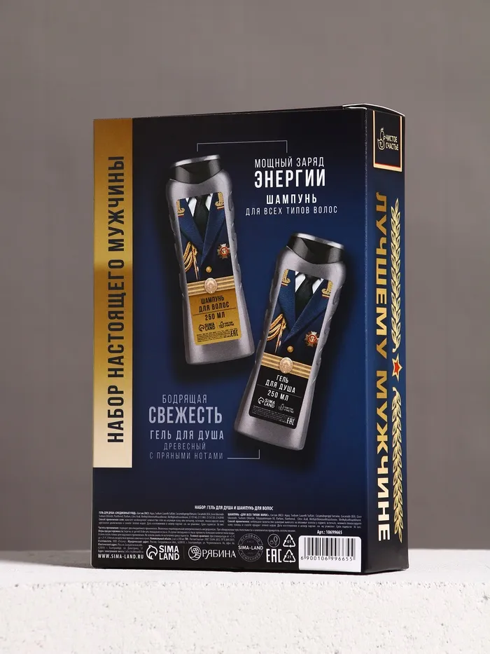 Подарочный набор «Тому, кто создан для побед», гель для душа, 250 мл и шампунь для волос, 250 мл, Чистое счастье — Характеристики