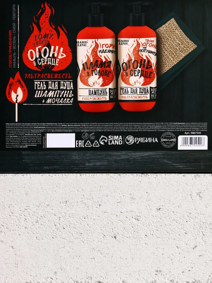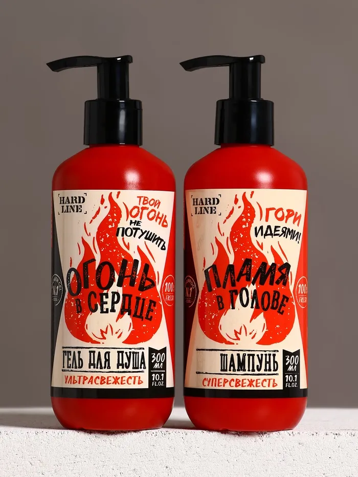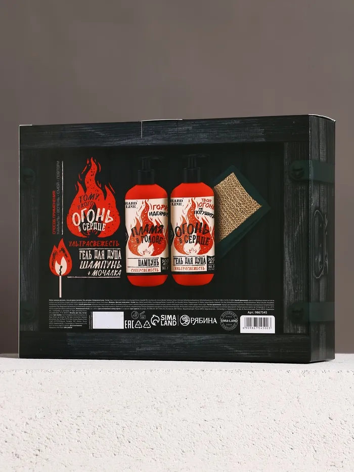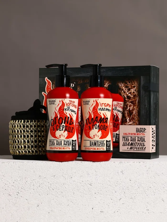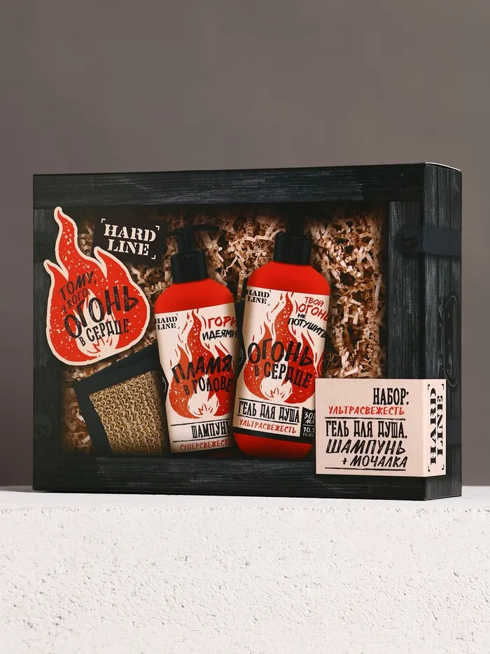 Подарочный набор «Тому, у кого огонь в сердце»: гель для душа и шампунь для волос, 2×300, мочалка, HARD LINE — Характеристики