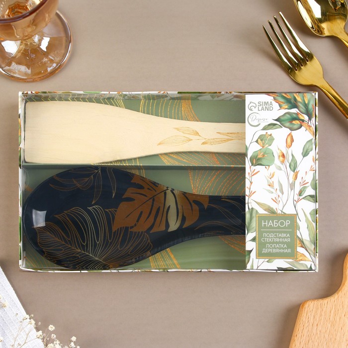 Подарочный набор из стеклянной подставки под ложку и деревянной лопатки — идеальный выбор для тех, кто ценит уют и комфорт на своей кухне.