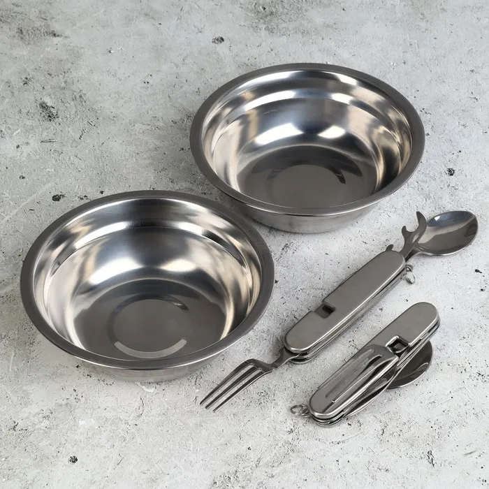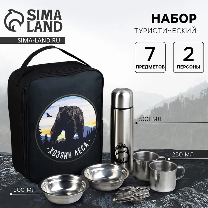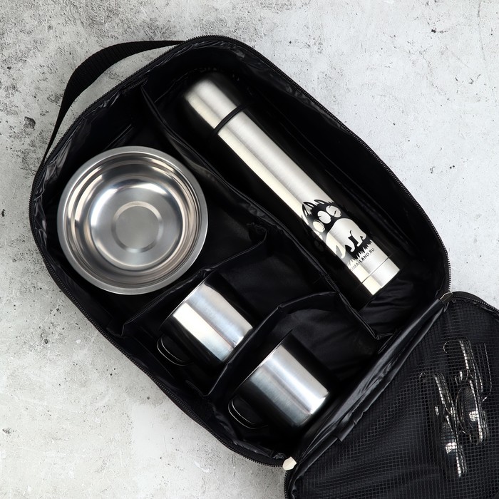 Подарочный набор туристический — идеальный выбор для любителей активного отдыха и приключений. В нём вы найдёте всё необходимое для комфортного путешествия: 2 кружки, мультитул, 2 тарелки, термос и чехол.