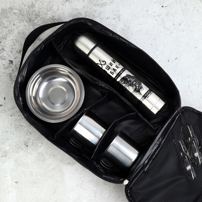 Подарочный набор туристический — идеальный выбор для любителей активного отдыха и приключений. В нём вы найдёте всё необходимое для комфортного путешествия: 2 кружки, мультитул, 2 тарелки, термос и чехол.