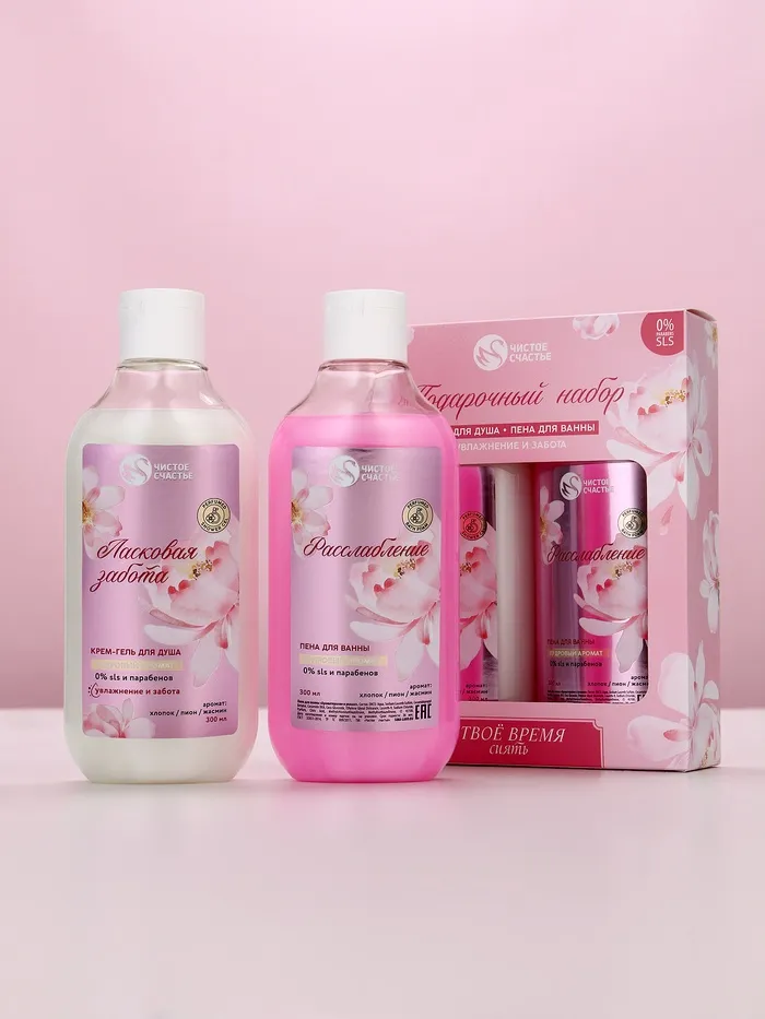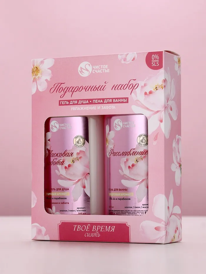 Подарочный набор «Твоё время сиять», гель для душа и пена для ванны, 2×300, Чистое счастье — Характеристики