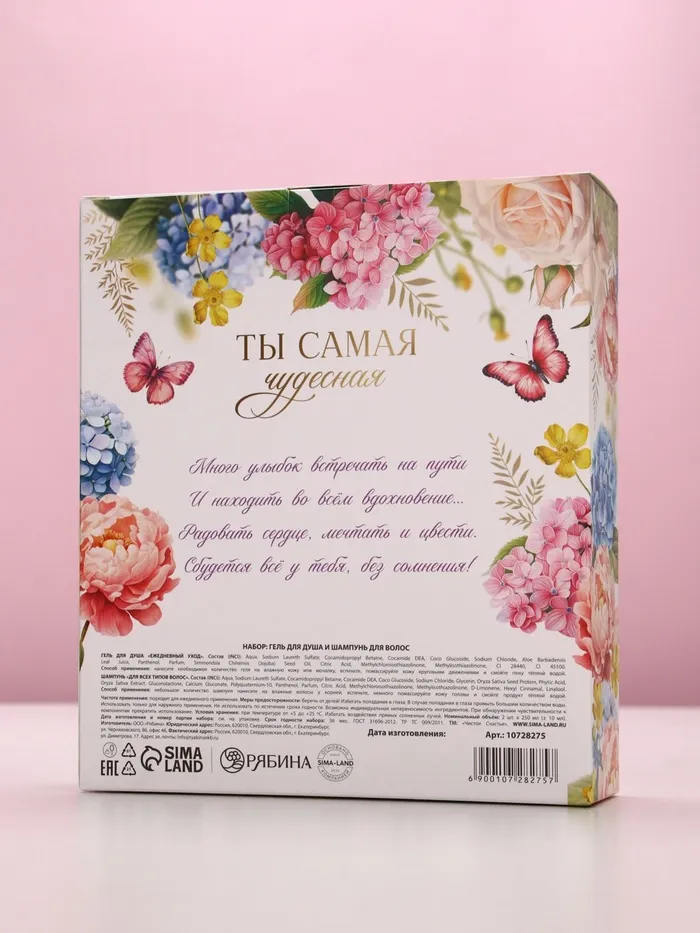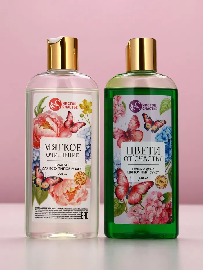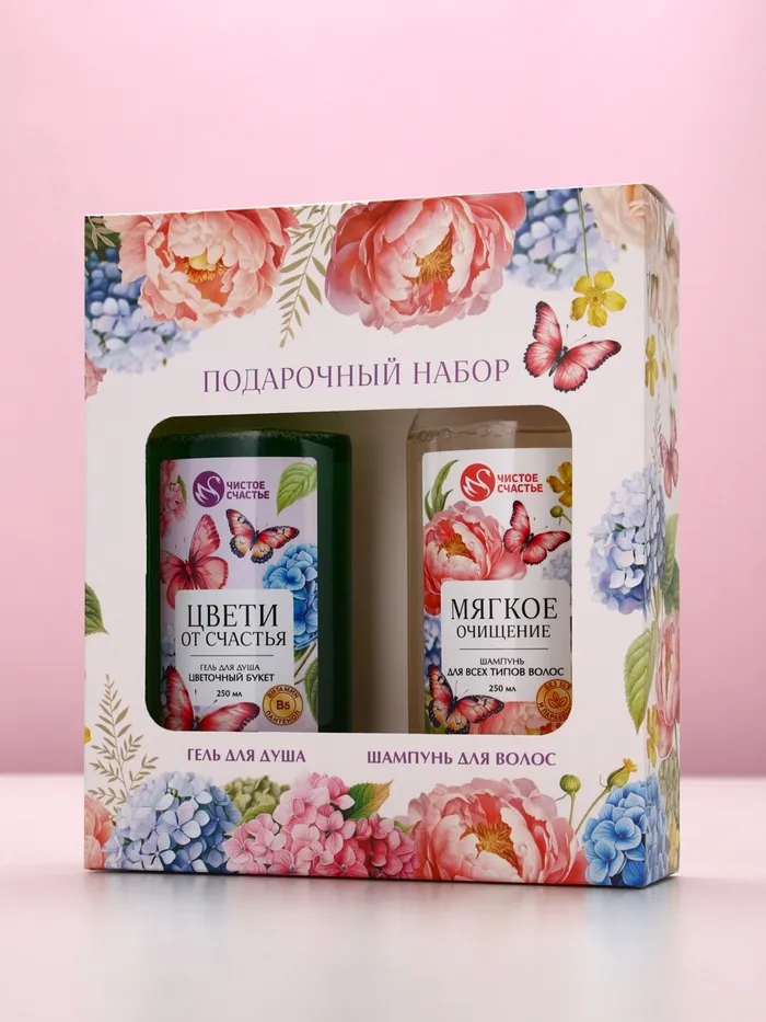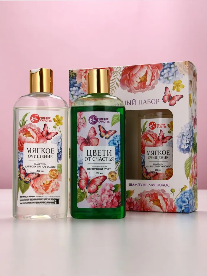 Подарочный набор «Ты самая чудесная», гель для душа и шампунь для волос, 2×250, Чистое счастье — Характеристики