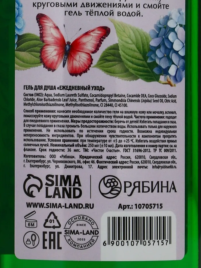 Составляющие набора: Гель для душа
