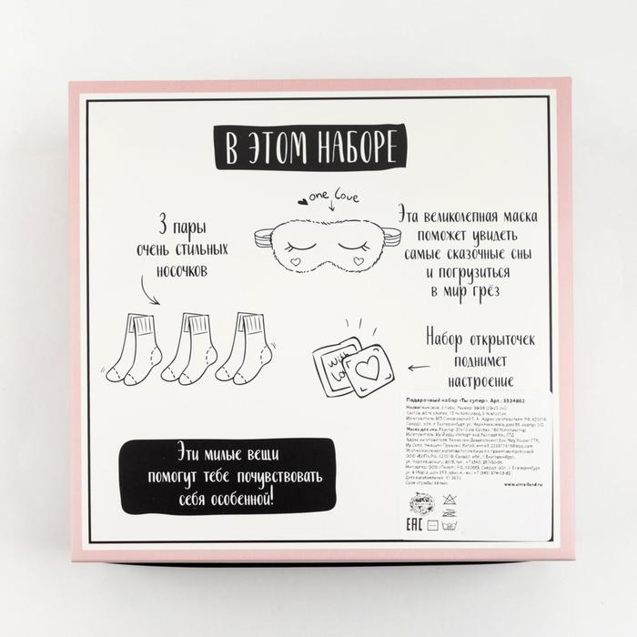 Подарочный набор «Ты супер» маска для сна, носки женские, 3 пары — Характеристики